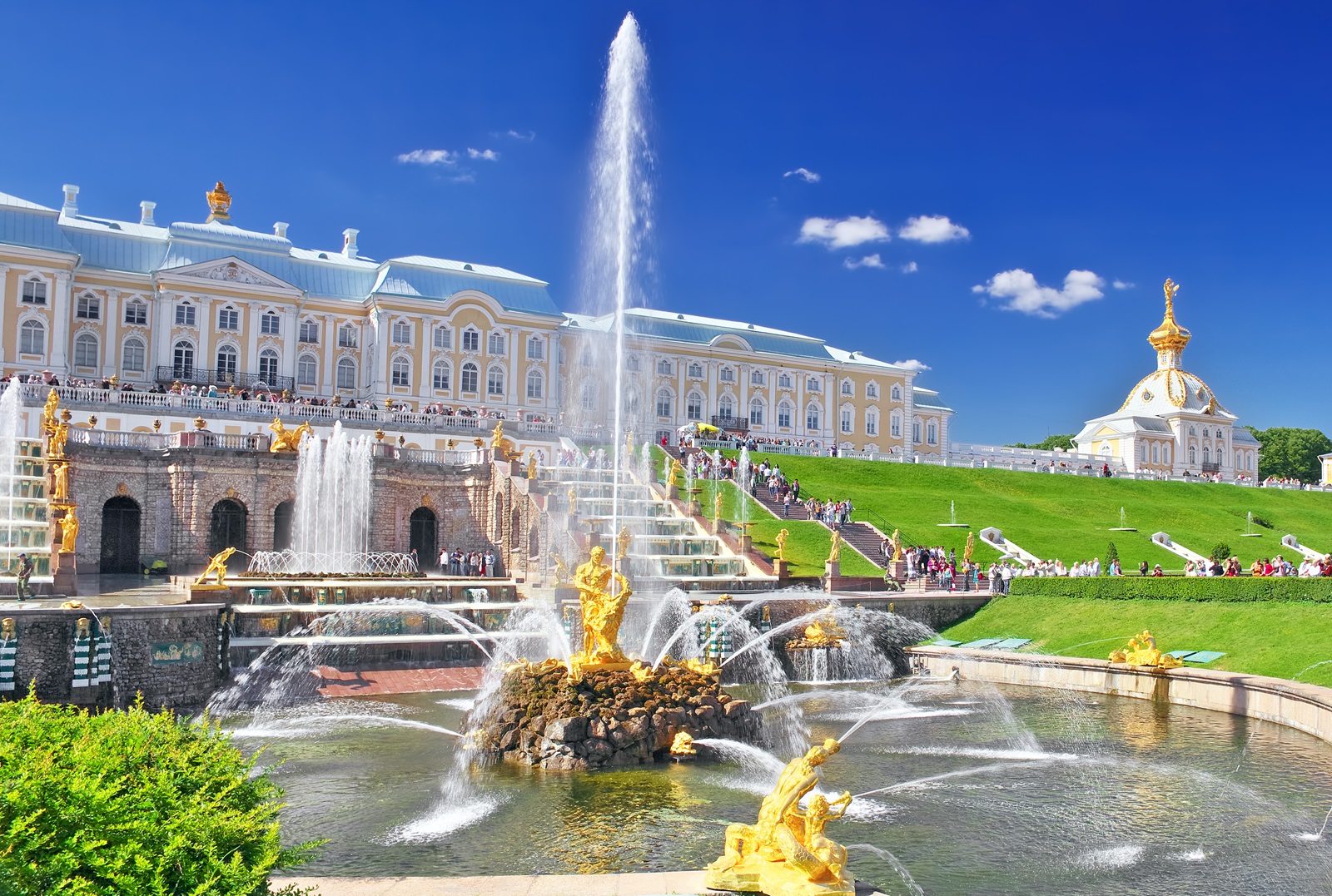 В 1710 году в Санкт-Петербурге в честь победы в этой битве по указу Петра была построена Сампсониевская церковь (поскольку битва произошла в день святого Сампсония Странноприимца — его память чтят 27 июня по старому стилю). К 25-летнему юбилею битвы в Петергофе была установлена известная сегодня скульптурная группа «Самсон, разрывающий пасть льву», где лев символизировал Швецию, герб которой содержит этого геральдического зверя. На самом поле Полтавской битвы в 1852 году была заложена Сампсониевская церковь.